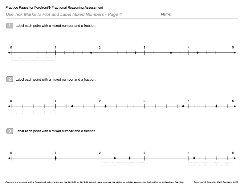NLMT Challenge 4: Measure and label points with fractions and mixed numbers (1/5-bars)