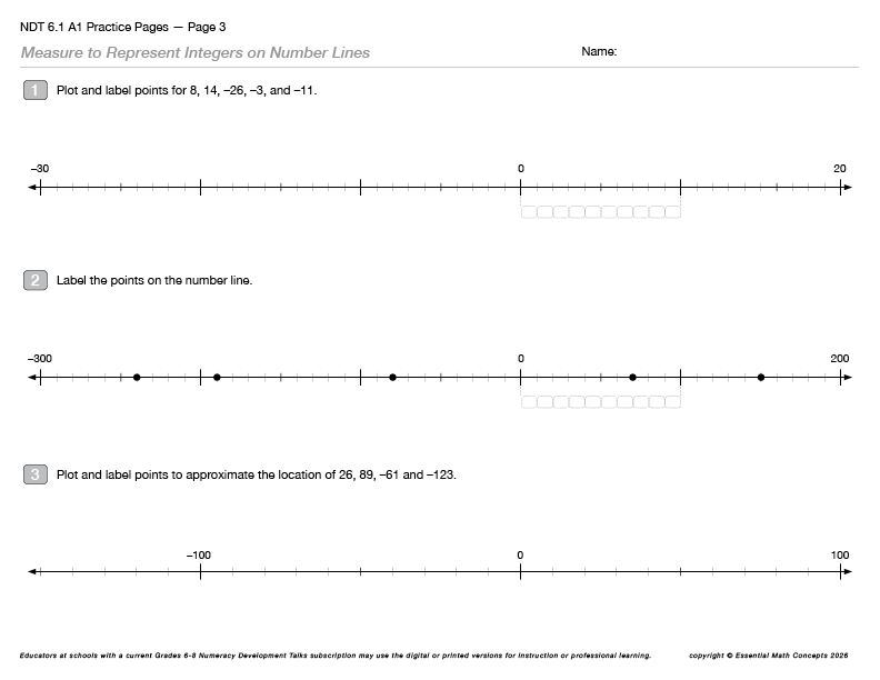 Then, students share strategies for measuring and labeling points on the number line. This brief activity allows teachers to review essential concepts and strategies introduced in the Numeracy Development Talk Video and applied on the NDT Practice Pages.