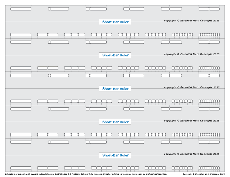 Students will use the rulers to complete some Practice Problem-Solving Pages. A set of rulers can be printed using the PDF below. Print these rulers using the same printer/copier used to print the pages. Then, use a paper cutter to cut out and trim the rulers. This process ensures that the printed size of the rulers and pages is the same so that rulers measure accurately on the pages.